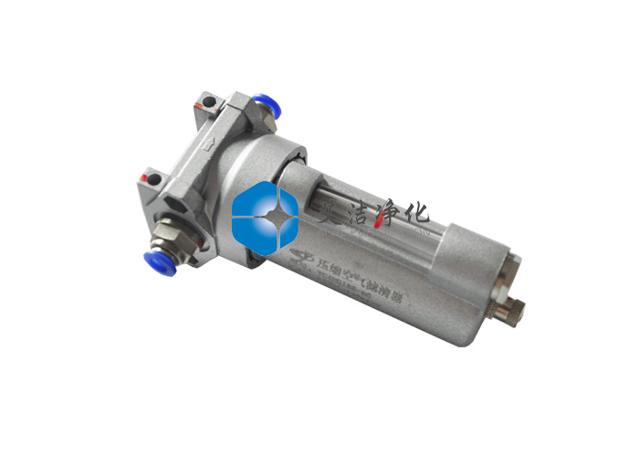 壓縮空氣濾清器應用在柴油機后處理系統中用來消除介質中的雜質,以保護設備的正常使用,減少設備維護費用。當壓縮空氣進入置有濾芯的濾清器后,其雜質被濾芯阻擋,而清潔的空氣由濾清器出口排出,當需要維護時,需要關閉電源,釋放壓力后,將排污閥打開,即可將濾桶內污染物排掉,更換濾芯時,只需將濾筒拆開,將濾芯取出更換再重新上緊濾筒即可。